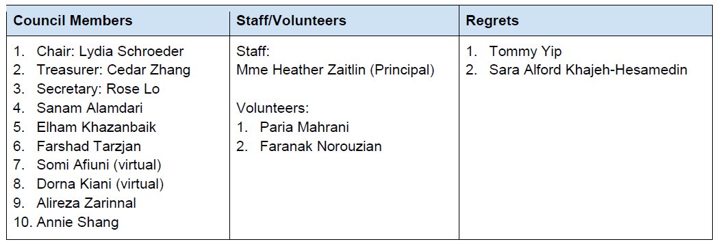School Council Meeting MinutesDate: April 24, 2025Time: 6:30pm to 8:15pm